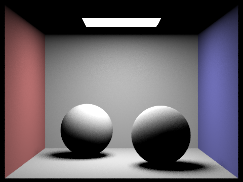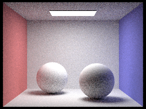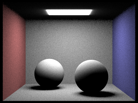 Both examples below use (a maximum of) 2048 samples per pixel, 1 sample per light,
