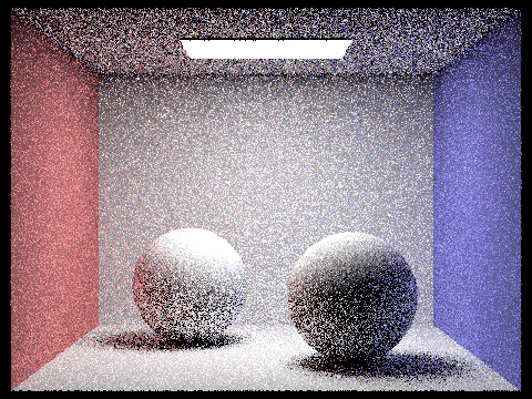We can also compare the levels of noise for different numbers of samples per light using importance light sampling. The images below are rendered with 1 sample per pixel and varying numbers of samples per light.