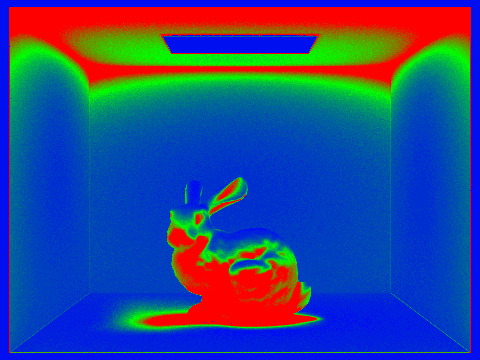 From the sampling rate images below, we can see adaptive sampling at work.